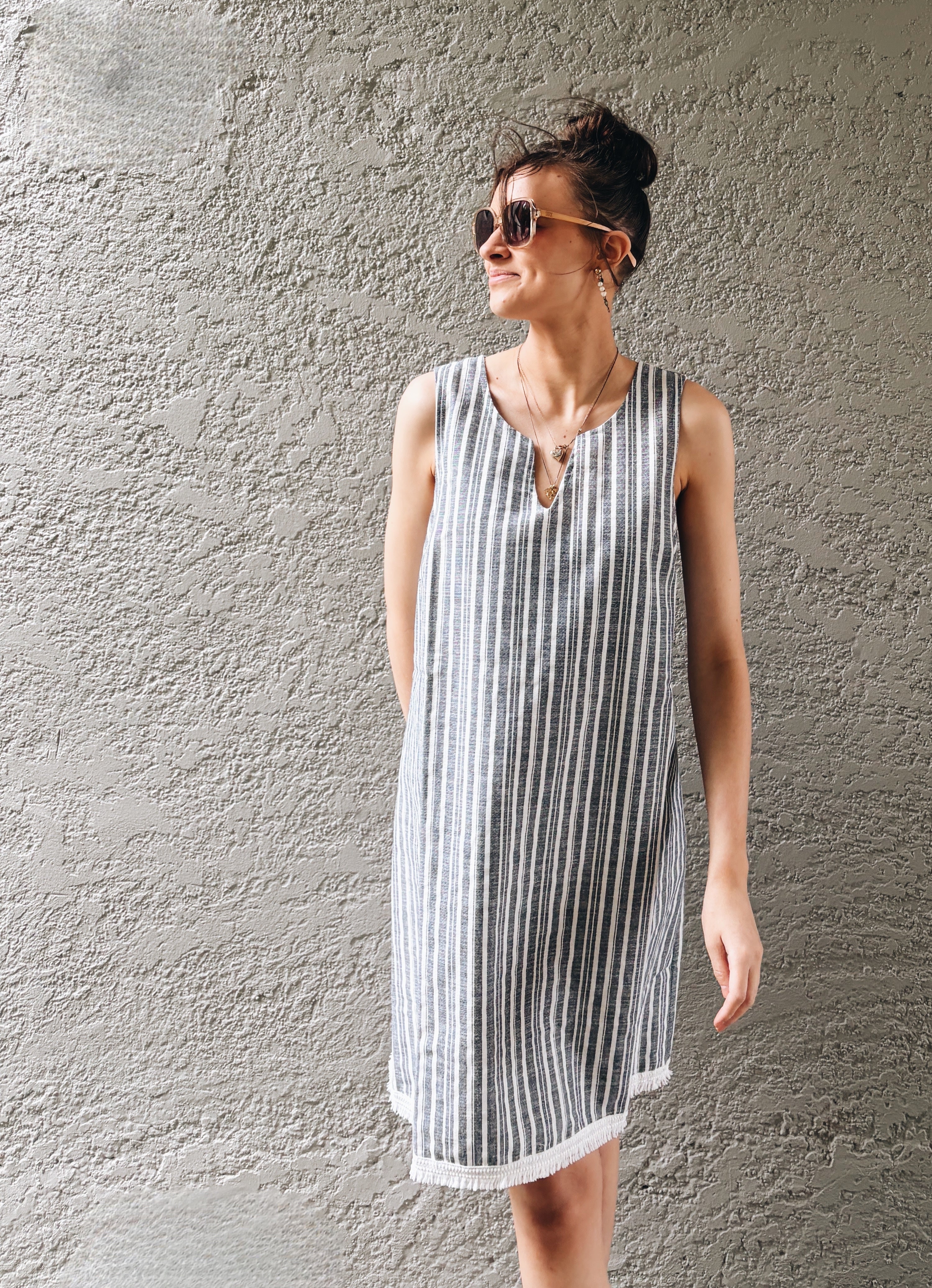 • Gorgeous shift dress with cute fringe detail.